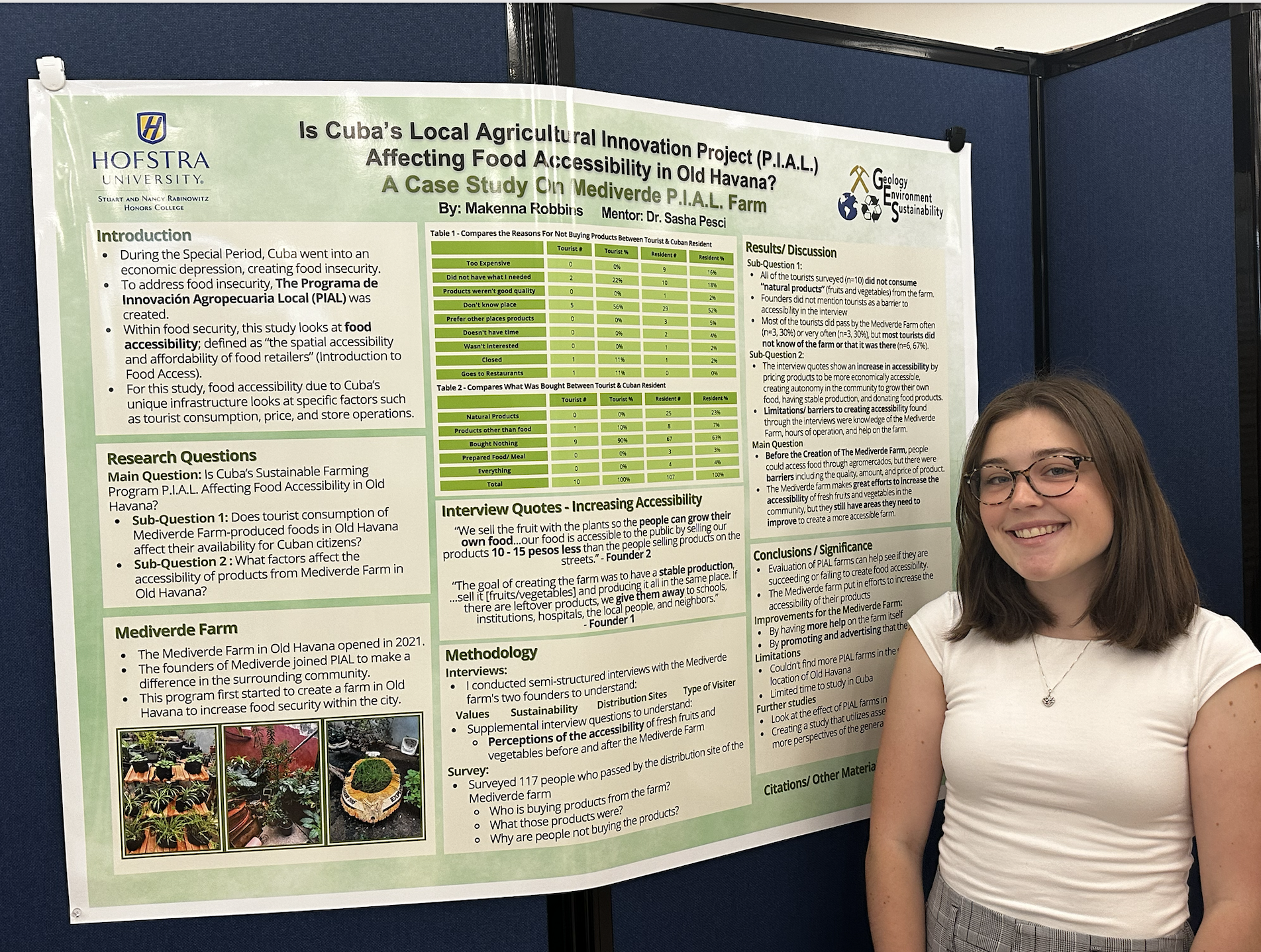 Makenna’s most recent research on Cuba’s food security is being published in the peer-reviewed journal JAFSCD. This research examines the Proyecto de Innovación Agropecuaria Local (PIAL) and the contributing factors to accessing food in Old Havana. She visited Cuba numerous times to conduct fieldwork for the project that included interviewing local farmers and surveying more than 100 people.